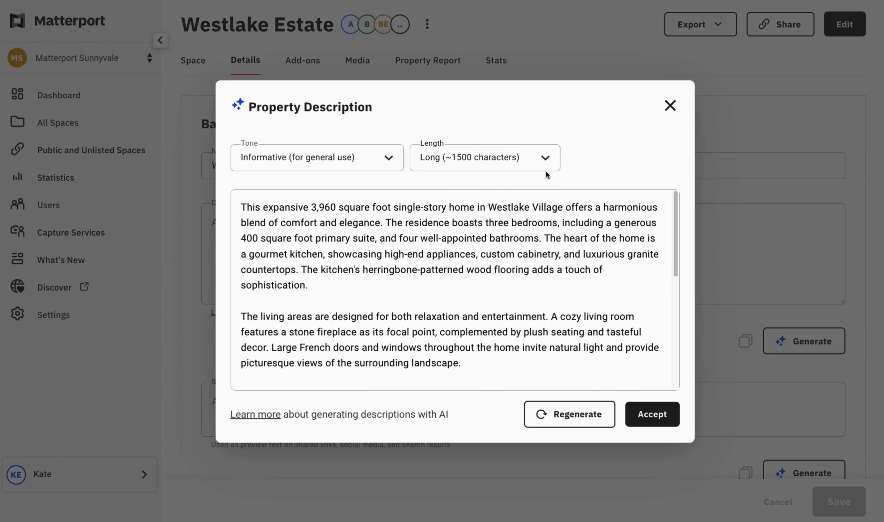 AI を活用した物件説明ツールも画期的なツールで、わずか数秒で