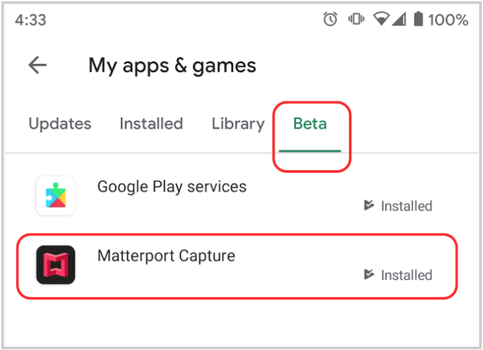 簡単に言うと、Matterport アプリの Play ストア ページの一番下までスクロールし、